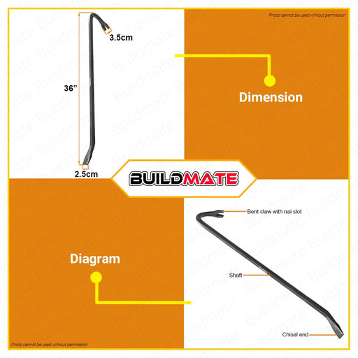 Buildmate Online DepotWADFOW Wrecking Bar 900mm 36" Inch 45# Carbon Steel Gooseneck Wrecking Bar For Easier Demolition Added Ripping Bar Leverage Nail Puller End / Chise...