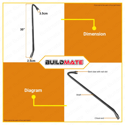 Buildmate Online DepotWADFOW Wrecking Bar 750mm 30" Inch 45# Carbon Steel Gooseneck Wrecking Bar For Easier Demolition Added Ripping Bar Leverage Nail Puller End / Chise...