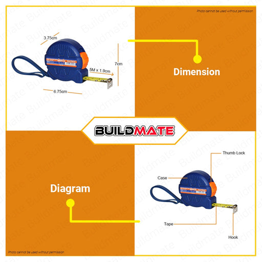 WADFOW Steel Measuring Tape 5m x 19mm Metric & Inch Measure Tape Tool WMT4320 •BUILDMATE WHT