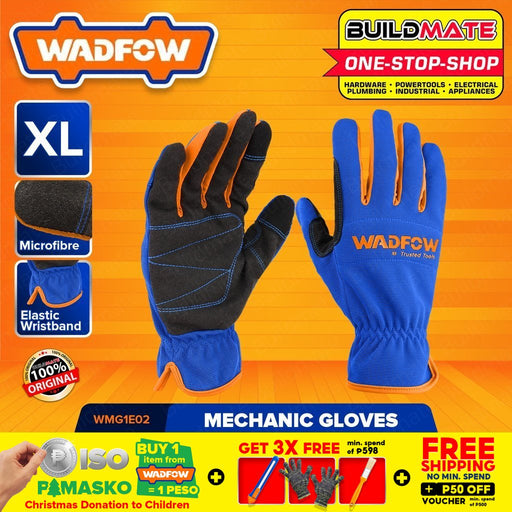 WADFOW XL Mechanic Gloves With Sponge Pad Elastic Wristband Safety Work Gloves WMG1E02 BUILDMATE WHT
