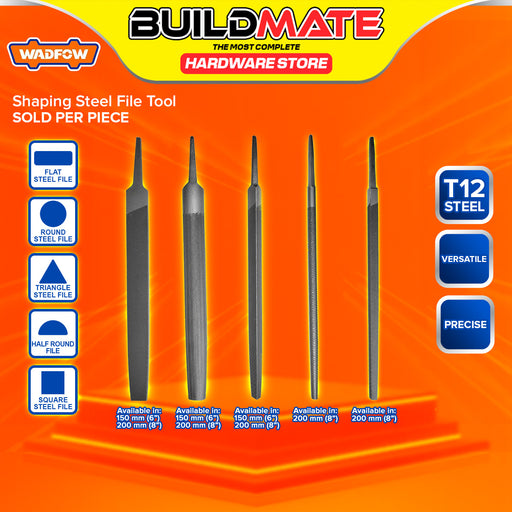 BUILDMATE Wadfow Steel File 6" / 8" Flat Half Round Square Triangle Metalworking File Hand Tools SOLD PER PIECE - WHT