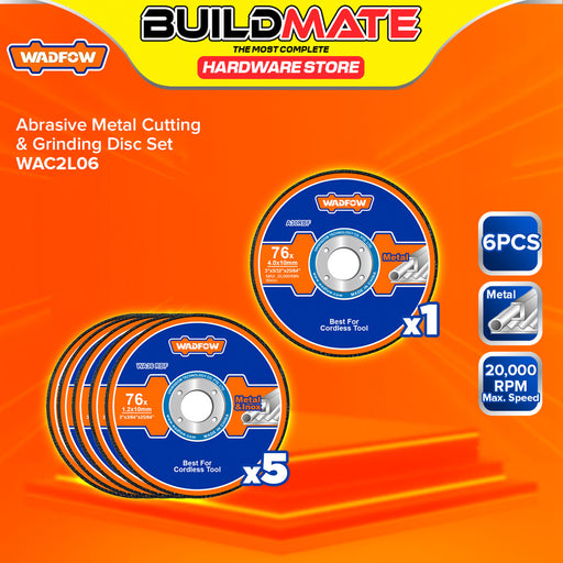 Buildmate Online DepotBUILDMATE Wadfow 6pcs Abrasive Metal Cutting and Grinding Disc Set 76mm Metalworking Ultra Thin Cutting Disc and Grinding Wheels Kit WAC2L06 - WHT ...