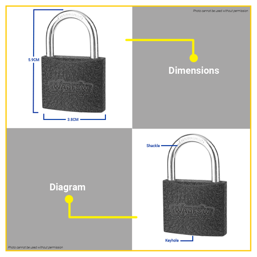 Buildmate Online DepotBUILDMATE Wadfow Square Type Vane Iron Padlock 40MM - 60MM SHORT Shackle Anti-Theft Keyed Wide Security Lock with Keys - WHT AVAILABLE SIZE:►40mm -...
