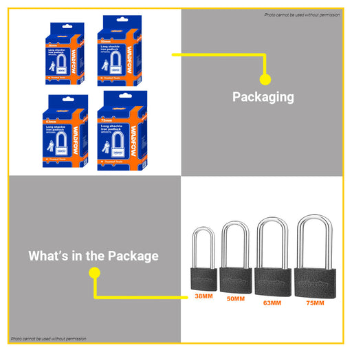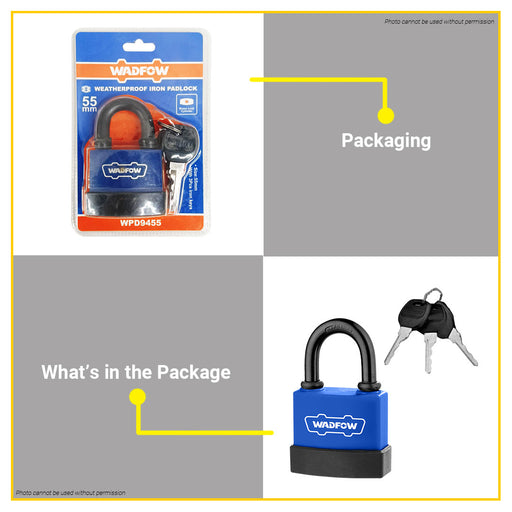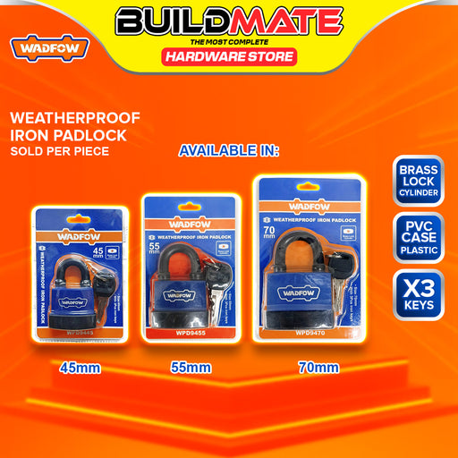 Buildmate Online DepotBUILDMATE Wadfow Iron Padlock 40MM - 75MM Long Shackle with 3pcs Iron Keys Anti-Theft Keyed High Security Pad Lock - WHT AVAILABLE IN:►38mm - WPD55...