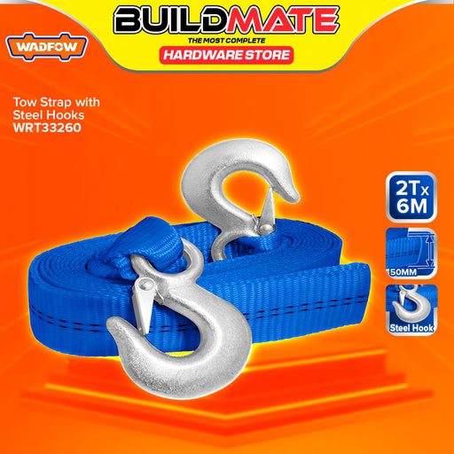 Buildmate Online DepotBUILDMATE Wadfow Tow Strap with Steel Hooks 2 Tons Heavy Duty Car Recovery Emergency Towing Belt Pull Rope for Heavy Vehicles WRT33260 - WHT SPECIF...