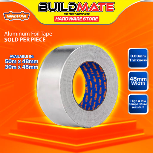 Buildmate Online DepotBUILDMATE Wadfow 30m / 50m Aluminum Foil Tape HVAC System 48mm Adhesive Heat Resistant Metallic Sealing Duct Thermal Insulation Silver Tape - WHT A...