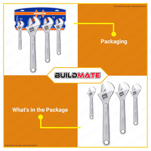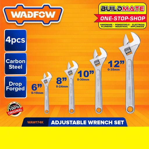 Buildmate Online DepotWADFOW 4PCS Adjustable Wrench Set 6", 8", 10", 12" Inch Hand Tool Heavy Duty Drop Forged Steel WAW174K | 100% ORIGINAL / AUTHENTIC •BUILDMATE• WHTS...