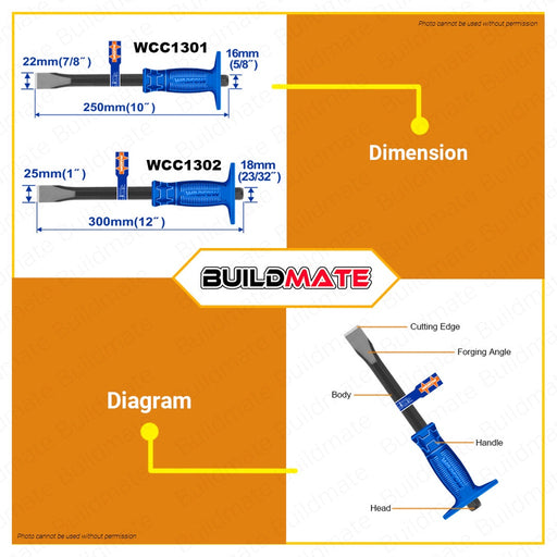 WADFOW Cold Chisel 10" Inch | 12" Inch Flat Head Flat Chisel [SOLD PER PIECE] •BUILDMATE• WHT