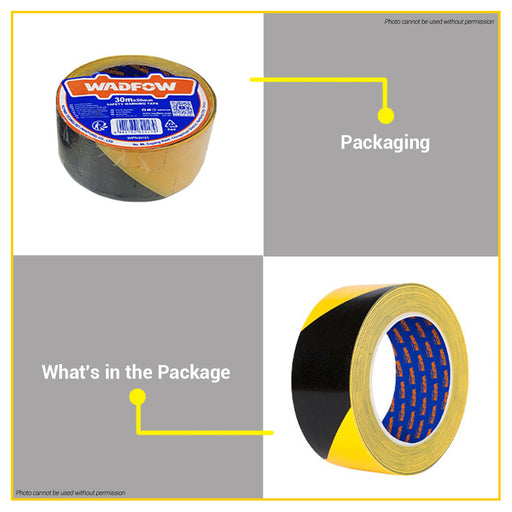 BUILDMATE Wadfow 50mmx30m Safety Warning Tape Yellow-Black Safety Caution Hazard Protective Barrier Stripe Floor Marking Restricted Area Security Sealing Line Warning Signal Tape WPN4H45 - WHT