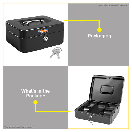 Buildmate Online DepotBUILDMATE Wadfow Cash Box With 5 Compartment Coin Tray Lockable Metal Secure Money Portable Cash Safe Box SOLD PER PIECE - WHT AVAILABLE IN:►2.9L►4...