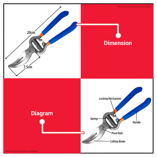Buildmate Online DepotBUILDMATE Wadfow 8" Forged Steel Bypass Pruner Heavy Duty Garden Cutting Shear Secateurs Pruning Tools Gardening Scissor WPA7K03 - WHT SPECIFICATIO...