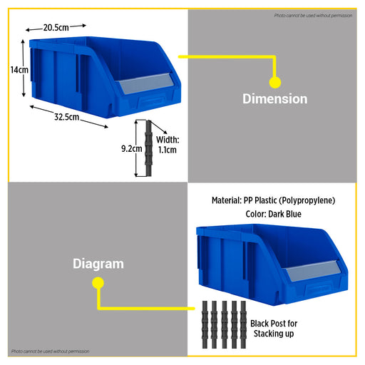 Buildmate Online DepotBUILDMATE Wadfow Stackable Plastic Storage Bin 325x205x140mm Multi-Purpose Wall Hanging Tools Organizer Nestable Storage Container Box For Home &am...