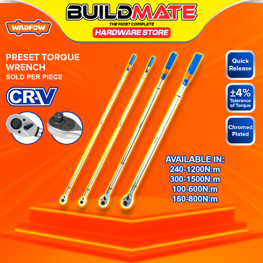 BUILDMATE Wadfow 1" / 3/4" Preset Torque Wrench Cr-V+Cr-Mo Chrome Plated Pre-calibrated Torque Socket Wrench Nut Bolt Remover Repair Hand Tools - WHT