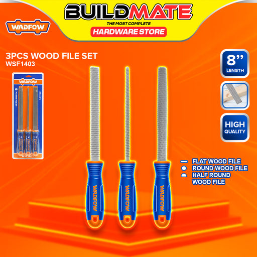 Buildmate Online DepotBUILDMATE Wadfow 3pcs 8" Wood File Set Round / Flat / Half-Round Multi-Purpose Woodworking Shaping Rasp Filing Tool Kit WSF1403 - WHT SPECIFICATION...