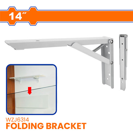 BUILDMATE Wadfow 14" Folding Bracket w/ 8 Attachment Heavy Duty Wall-Mounted Collapsible Support Shelf Metal Bracket SOLD PER PIECE WZJ6314 - WHT