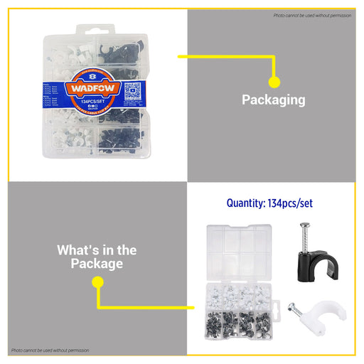 BUILDMATE Wadfow 134PCS/SET Cable Clip Kit Black & White Cable Management Cord Organizer Wire Clamp Mounting Clip Fastener Holder Set WFQAB01 - WHT