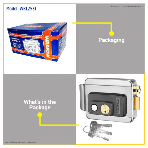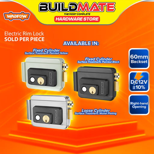 Buildmate Online DepotBUILDMATE Wadfow Electric Rim Lock 60mm Loose / Fixed Cylinder Right Hand Opening With 3pcs Brass Keys Electronic Security Rim Mounted Gate Door Au...