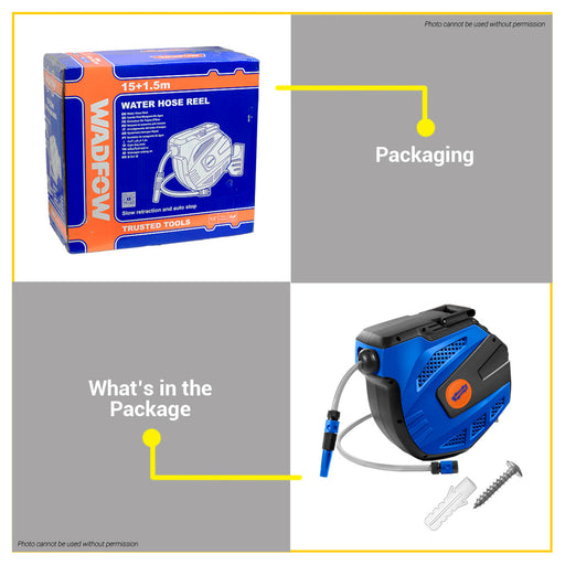 Buildmate Online DepotBUILDMATE Wadfow 1/2" Water Hose Reel 150psi with Slow Retraction Outdoor Garden Hose Management Roller Storage Reel System WVZ1515 - WHT SPECIFICA...