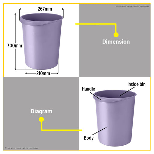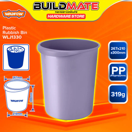 Buildmate Online DepotBUILDMATE Wadfow Plastic Rubbish Bin 267x210x300mm with Side Handle Open Top Waste Management Container Garbage Dustbin Round Trash Can WLJ1330 - W...