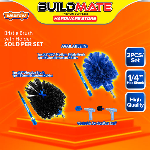 Buildmate Online DepotBUILDMATE Wadfow 2PCS/SET Bristle Brush With Extension Holder Medium / Abrasive 1/4" Hex Shank Cleaning and Restoration Scrubbing Brush - WHT AVAIL...