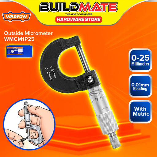 Buildmate Online DepotBUILDMATE Wadfow Outside Micrometer 0-25mm External Dimension Micrometers Caliper Screw Gauges Metric Measuring Tool WMCM1P25 - WHT SPECIFICATION:►...