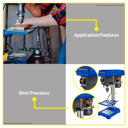 BUILDMATE Wadfow 350W Drill Press 13mm 5-Speed Iron Benchtop Table Drilling Machine WDP15350P - WPT