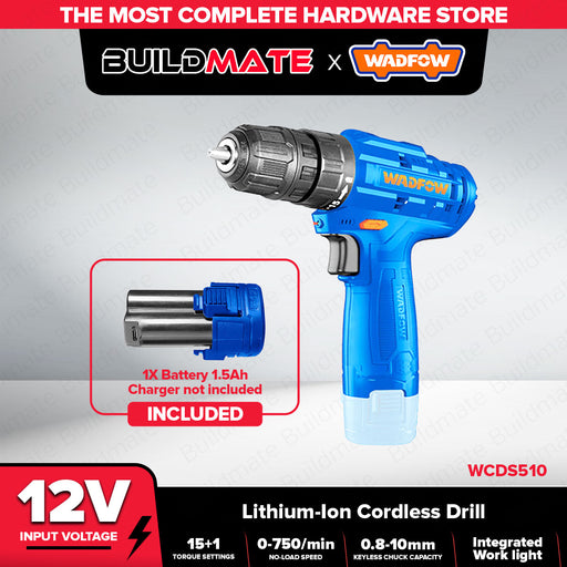 BUILDMATE Wadfow Lithium-Ion Cordless Drill 12V Drilling Gun with Power Indicator Battery Power Tools WCDS510 | 100% ORIGINAL / AUTHENTIC • WPP