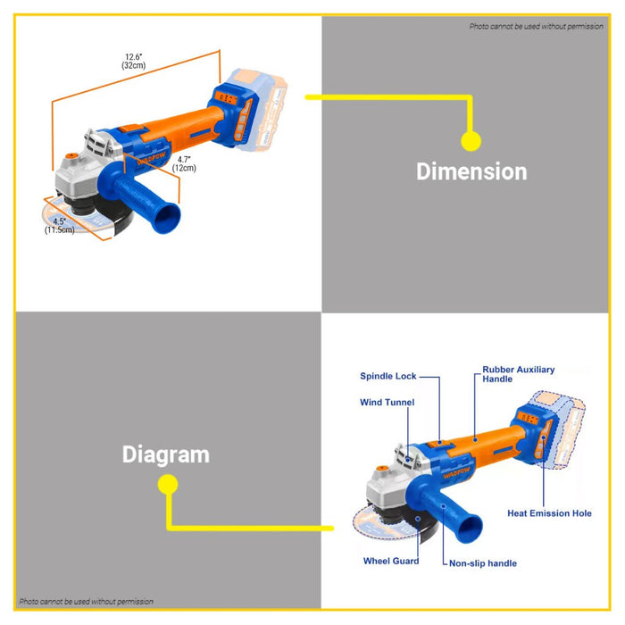 BUILDMATE Wadfow 20V Lithium-Ion Brushless Angle Grinder with 1PC Battery and Charger WLAPM11 - WCPT