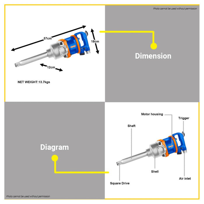 BUILDMATE Wadfow 25.4mm Air Impact Wrench Square Drive with Universal Connector WAT1501 - WPT
