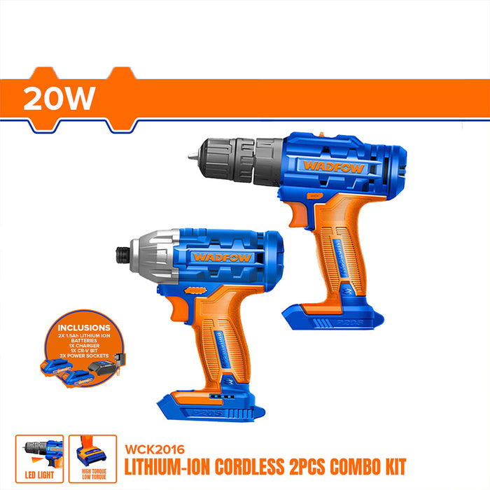 BUILDMATE Wadfow 2PCS/SET Lithium-Ion Cordless Combo Kit Cordless Drill & Impact Driver Brushless Motor WCK2016 WCPT