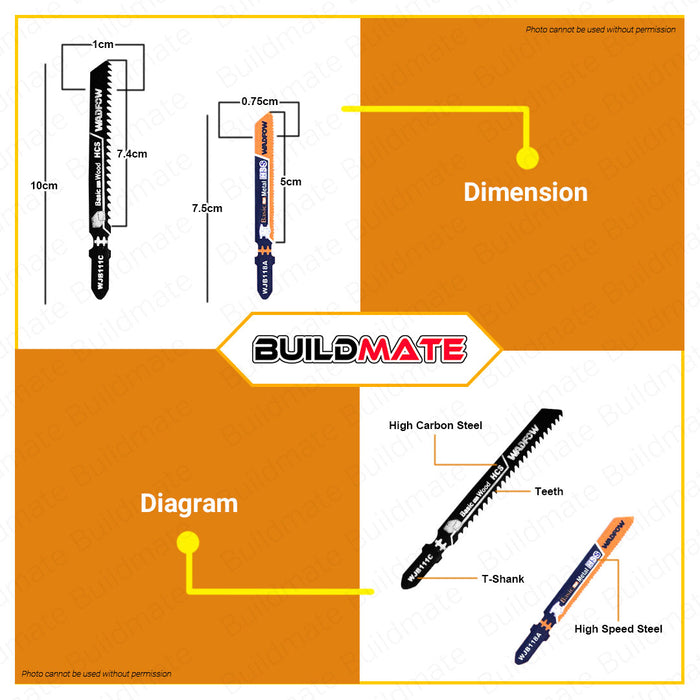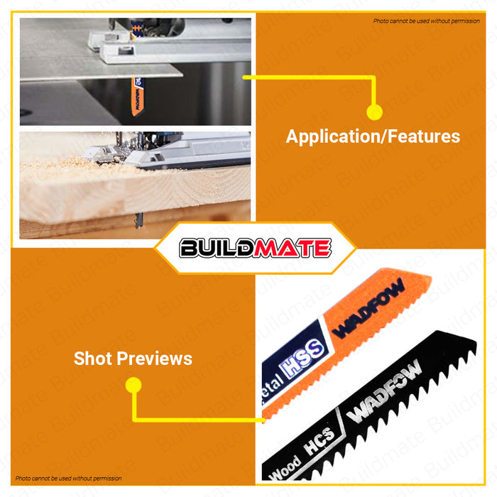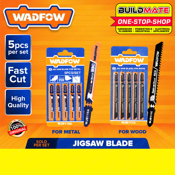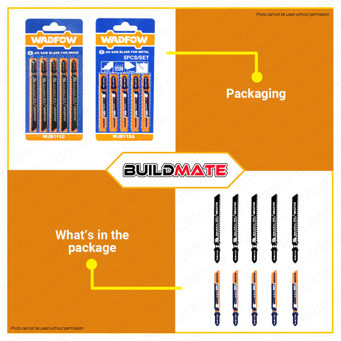 BUILDMATE Wadfow 5PCS/SET Jig Saw Blade for Wood | For Metal Fine Curve Straight Basic for Clean Cut Saw Blades Wood Cutting WJB111C | WJB118A • WHT