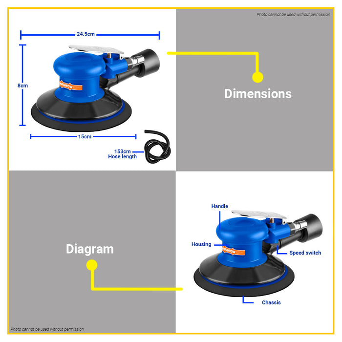 ►Air Pressure Requirement: 90 psi (pounds per square inch) or 6.3 bar, the recommended air pressure for optimal performance of the air sander.