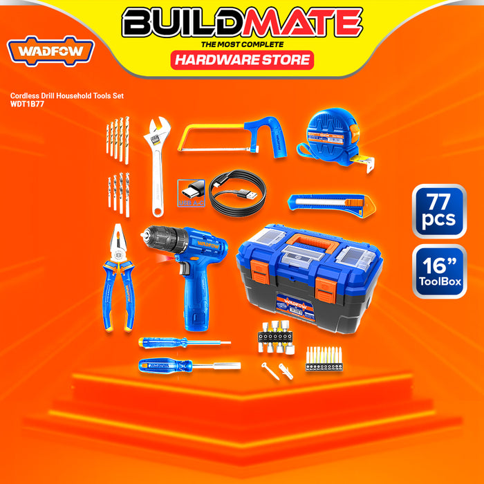 BUILDMATE Wadfow 77PCS Tools Set Cordless Drill Screwdrivers Bits DIY Repair Tools WDT1B77 WCPT