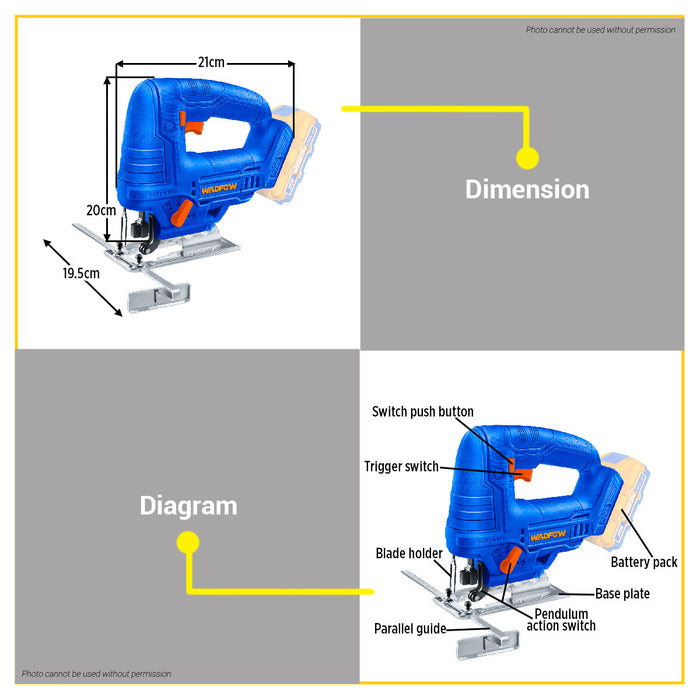 BUILDMATE Wadfow Lithium-Ion Cordless Jig Saw 20V Wood Cutting Machine Jigsaw Woodworking Cutter Power Tools WLS1565 - WCPT