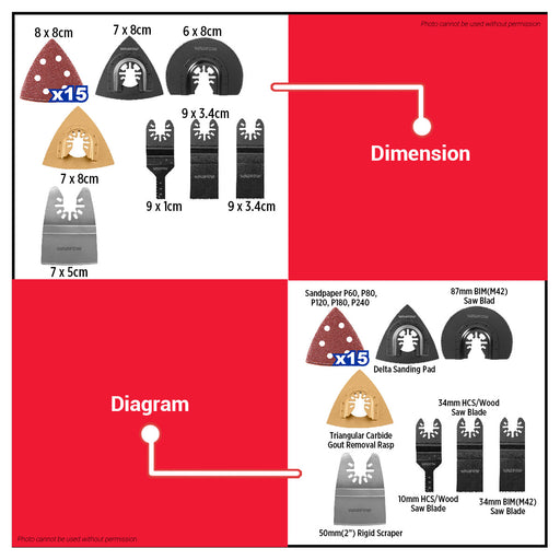 WADFOW 22pcs/set Multi-Function Saw Accessories Tool Blade Set WMA9417 WHT - BUILDMATE