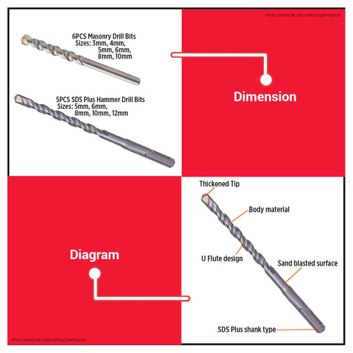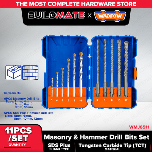 Buildmate Online DepotNo reviewsWADFOW 11pcs/set Masonry and Hammer Drill Bits Set WMJ6511 WHT - BUILDMATE SPECIFICATIONS:► Model: WMJ6511► Quantity: 11pcs Masonry and Hammer Dril...