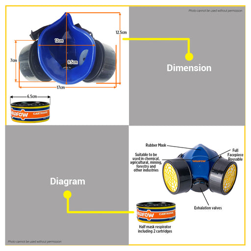 Buildmate Online DepotNo reviewsWadfow High Efficiency Filtration Mask Paint Respirator (Including Two Cartridges) WRJ2502 WHT SPECIFICATIONS:► Model: WRJ2502► Half mask respirato...