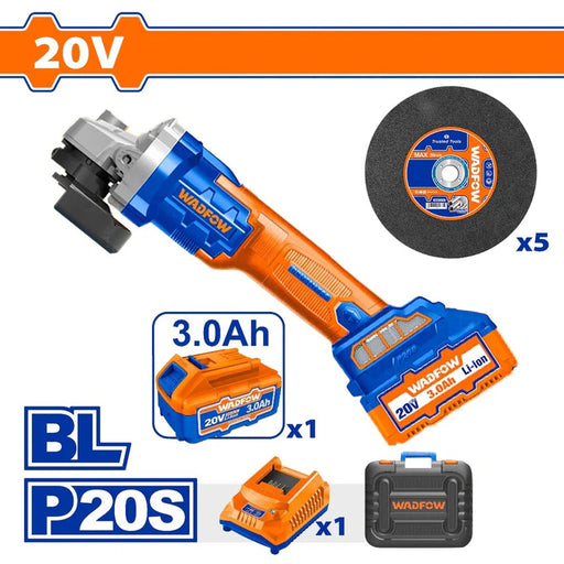 Buildmate Online DepotNo reviewsWADFOW P20S/20V Lithium-Ion Cordless Brushless Motor Angle Grinder with 5pcs Cutting Disc WLAP5212 WCPT SPECIFICATIONS:Model: WLAP5212Brushless M...