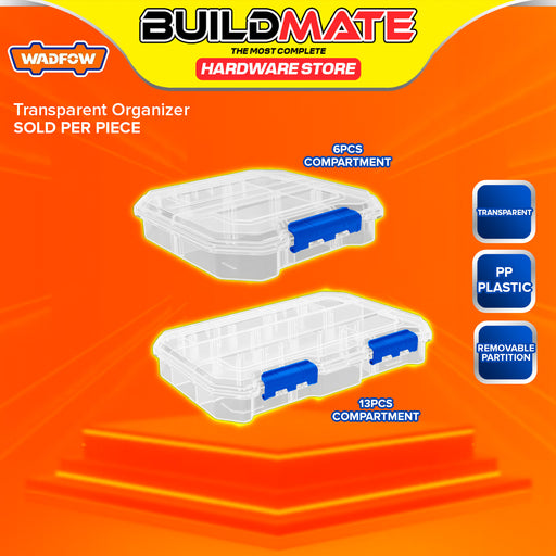 BUILDMATE Wadfow Transparent Organizer with 6pcs / 13pcs Compartment Clear Plastic Storage Box Carrying Case Tool Box - WHT AVAILABLE IN:►6pcs Comp...