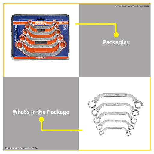 BUILDMATE Wadfow 5PCS 8-22mm Half Moon Ring Wrench Set C-type Plum Double Ended Ring Metric Spanner Auto Repair Tools WFR3405 • WHT SPECIFICATIONS...