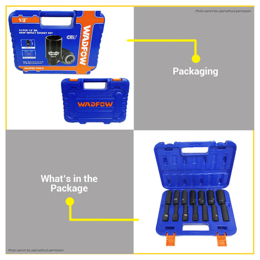 BUILDMATE Wadfow 14pcs 1/2" Dr. Deep Impact Socket Set WMS4D02 - WHT