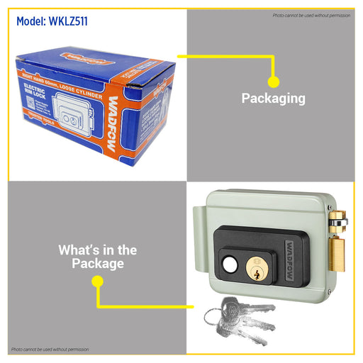 Buildmate Online DepotNo reviewsBUILDMATE Wadfow Electric Rim Lock WKLZ511 - WHT SPECIFICATION:Model: WKLZ511Backset: 60mmRight hand openingLoose cylinderLock size: 130x105x40mmPo...