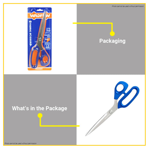 Buildmate Online DepotNo reviewsBUILDMATE Wadfow 11" Fabric Scissors Thickness 3.0mm WSX5601 - WHT SPECIFICATION:Model: WSX5601Size:275mm (11"")Material: Stainless steelBlade thic...