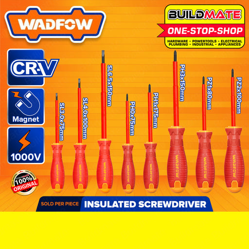 BUILDMATE Wadfow Insulated Screwdriver 80MM - 150MM [SOLD PER PIECE] Flat & Philip Screwdriver Round Shank & Flathead Slotted Crosshead Screw Driver Repair Tool Kit Hand Tool • WHT