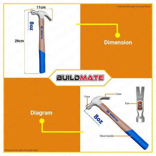 WADFOW Claw Hammer 8oz 200g Hardwood Handle Drop-forged Hammerhead WMB3308 Tools •BUILDMATE• WHT