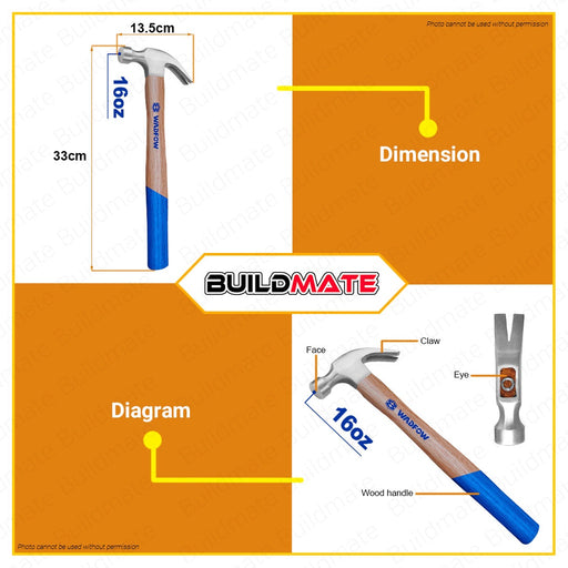 WADFOW Claw Hammer 16oz 450g Drop-forged Hammerhead Hardwood Handle WMB3316 •BUILDMATE• WHT