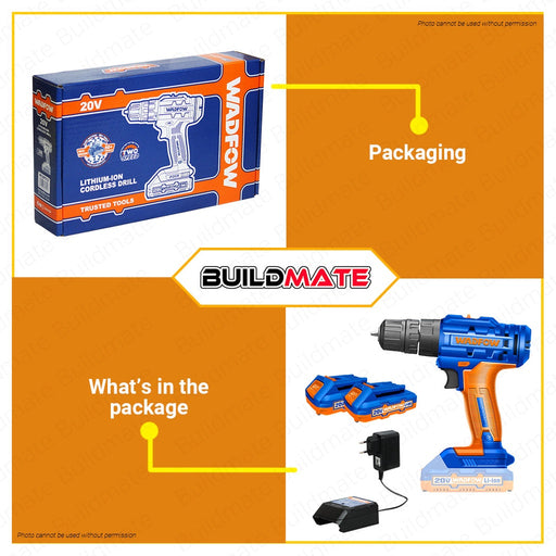 Buildmate Online DepotWADFOW Lithium-Ion Li-Ion Cordless Drill Gun 20V with 2x Battery & Charger WCDP512 | 100% ORIGINAL / AUTHENTIC •BUILDMATE• WCPT SPECIFICATIONS...