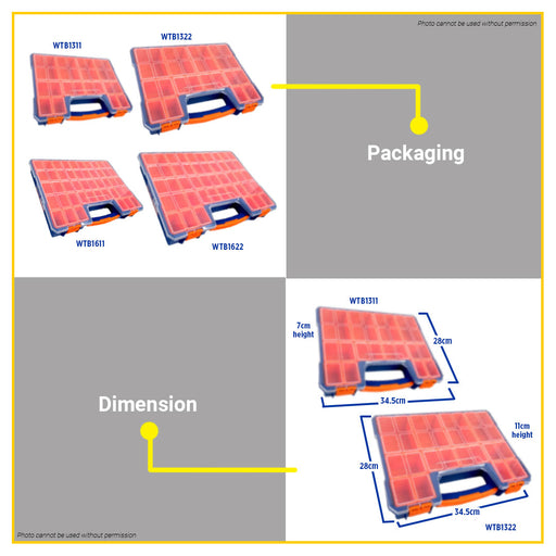 Buildmate Online DepotBUILDMATE Wadfow Plastic Organizer 13.5" / 16.5" Inch Stackable Storage with Removable Compartments Sorting Box SOLD PER PIECE WTB1311 / WTB1322 / ...