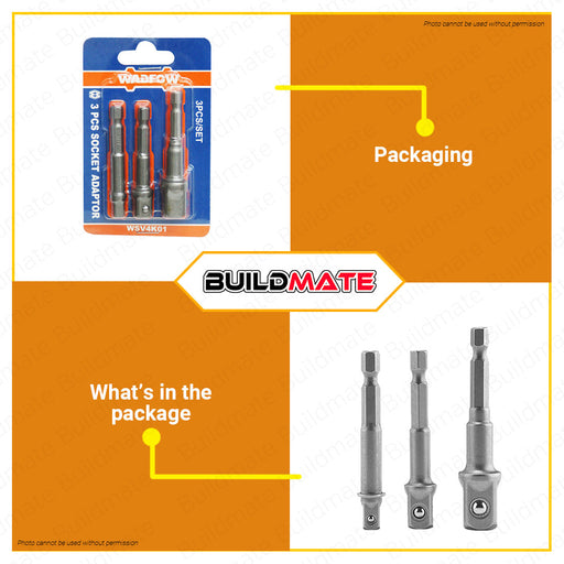 Buildmate Online DepotWADFOW 3PCS/SET Socket Adaptor Impact Grade Socket Adapter Hex Shank Adapter Drill Quick Change Nut Driver Socket Bit Set Adapters To Use With Dril...