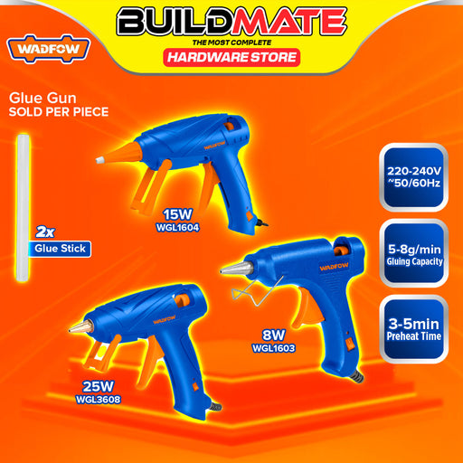 Buildmate Online DepotBUILDMATE Wadfow Electric Hot Melt Glue Gun 8W / 15W / 25W Adhesive Multipurpose Applicator with 2pcs Glue Sticks for Arts Crafting DIY Projects - ...